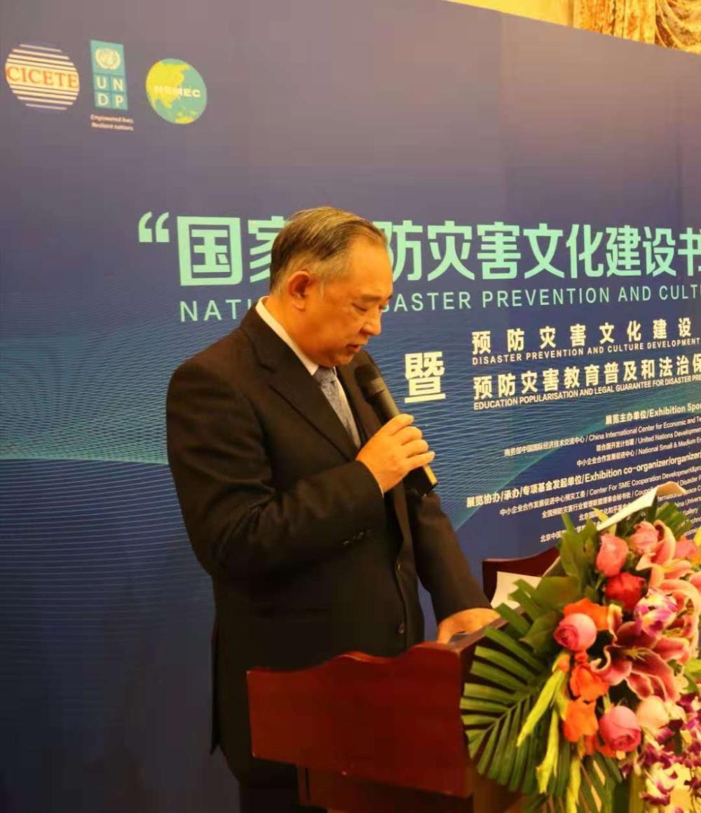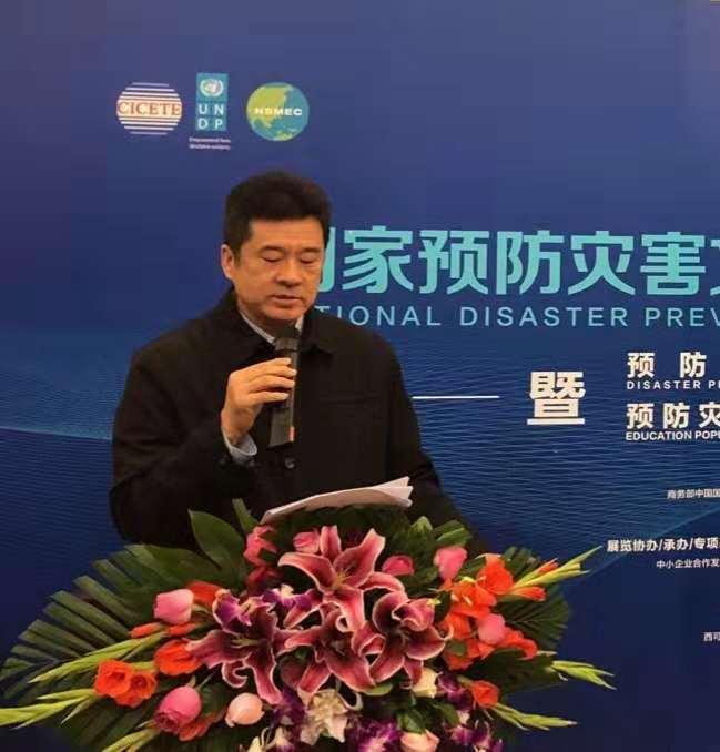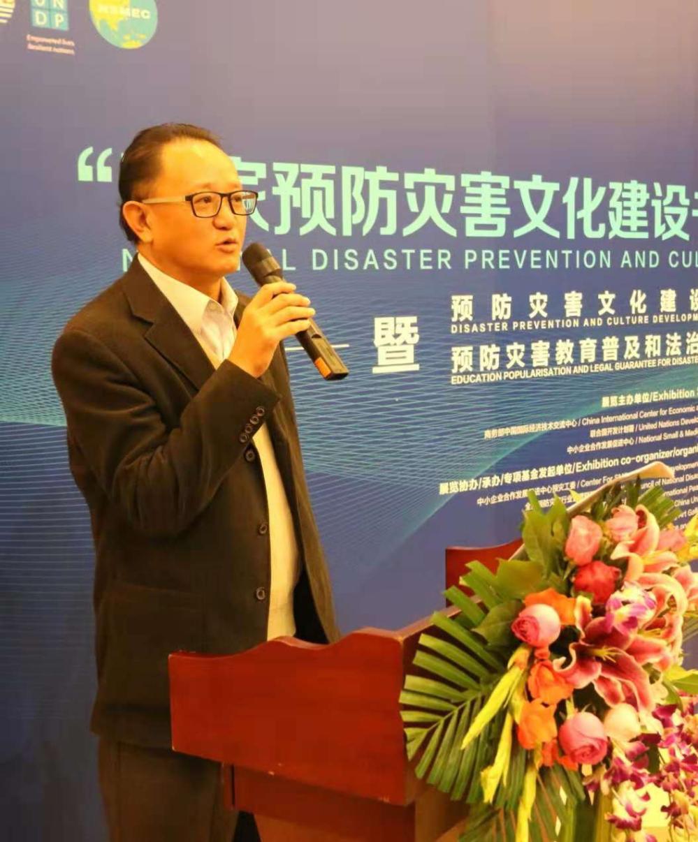 中小企业合作发展促进中心副主任、全国预防灾害行业管理联盟理事会理事长、国家预防灾害文化建设项目管理办公室负责人、专项基金发起人陈忱主持捐赠仪式。