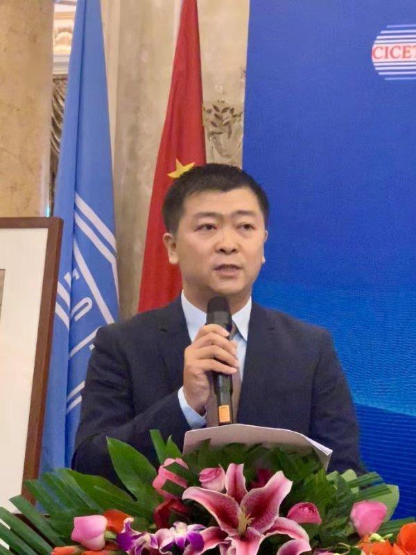 ▲杨鹏冲与参会各国嘉宾合影