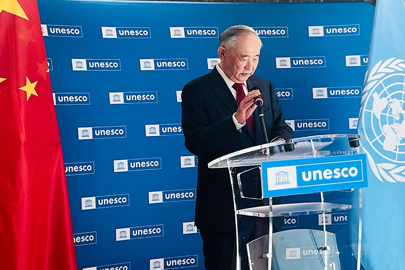 李若弘先生在与联合国教科文组织助理总干事莉迪亚·布里托阁下、中国驻联合国教科文组织大使杨新育致辞后,与各国驻教科文组织大使和各界代表共同启动系列活动。大赛作为丝路文明互鉴的重要载体,为向各国公开展示全球青少年镜头下的丝路人文风情、自然风貌,历史记忆,优秀作品隆重地布满联合国教科文组织外墙。