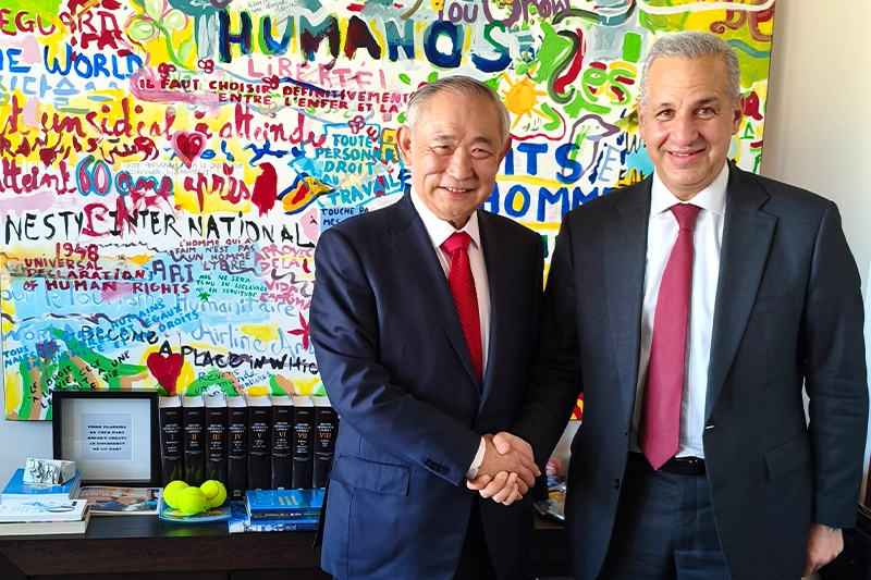 4月8日,中国世界和平基金会主席、北京国际和平文化基金会理事长李若弘先生赴联合国教科文组织总部,出席第七届“丝绸之路青年之眼”国际青少年摄影大赛优秀作品展开幕式暨第八届“丝绸之路青年之眼”国际青少年摄影大赛启动仪式,联合国教科文组织新任总干事与李若弘为首发摄影画册作序。联合国教科文组织总干事哈立德·阿纳尼首次与中国NGO代表团举行正式会面,共商在丝绸之路合作的动能与空间,在战争冲突中和平公益的特殊作用,感谢中国对丝绸之路文化互动版图的支持,并表示将参观访问北京国际和平文化基金会与和苑博物馆。