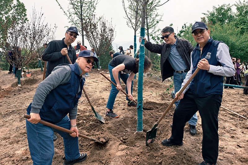 4月19日,春风和煦、草木萌发,阳台山处处氤氲着盎然春色。北京国际和平文化基金会领导杨惠时、萧有茂、苏宏、张健、王红专等一行,携手中国工合国际委员会、对外友协、海淀区政府、白求恩协会、北京大学等相关代表,以及众多来自北美、非洲的国际友人,齐聚阳台山开展公益植树活动,携手栽种友谊之树,共话国际友好情谊,传承弘扬革命精神。